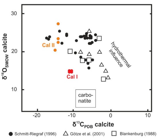 - Götze, J.; Möckel, R.; Vennemann, T.; Müller, A. Origin and geochemistry of agates from Permian volcanic rocks of the Sub-Erzgebirge basin (Saxony, Germany). Chem. Geol. 2016, 428, 77–91. [Google Scholar] [CrossRef]