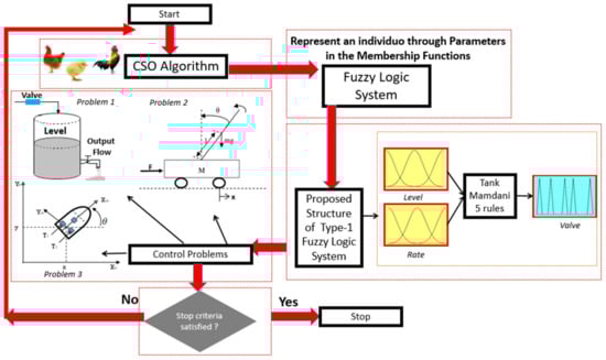 The organization of this paper is as follows. Section 2 describes the chicken search optimization algorithm. Section 3 describes each of the three control problems, the structure, equations and characteristics. Section 4 describes the proposed structure of the Type-1 Fuzzy Logic System (T1FLS) for each control problem. In Section 5 the simulation results are presented and analyzed. In Section 6 a comparative and discussion of results are presented. Finally, Section 7 presents some relevant conclusions and future works in this paper.