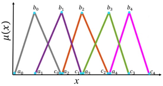 A type-1 fuzzy set in the universe is characterized by a membership function taking values on the interval [0, 1] and can be represented as a set of ordered pairs of an element and the membership degree of an element to the set and are defined by Equation (12) [53,54]: