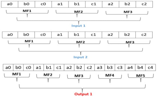 Figure 3 and Figure 4 show the points (parameters) that make up each input and output triangular membership function.