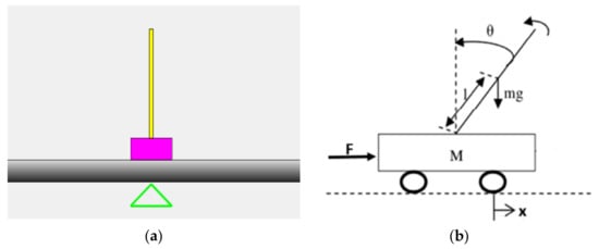 Second problem of control. (a) Representation in the model, and (b) graphic idea for the inverted pendulum controller.