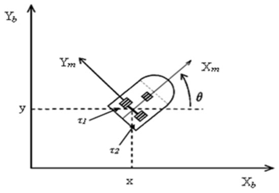 where (x,y) is the position in the (world) reference frame, is the angle between the heading direction and the x-axis, and are the linear and angular velocities. Furthermore, Equation (11) shows the non-holonomic constraint, which this system has, which corresponds to a no-slip wheel condition preventing the robot from moving sideways.