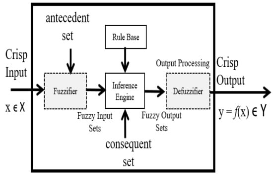 A fuzzy logic system (FLS) that is defined entirely in terms of Type-1 fuzzy sets, is known as Type-1 Fuzzy Logic System (Type-1 FLS), and its elements are defined in the following Figure 10 [45,46].