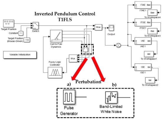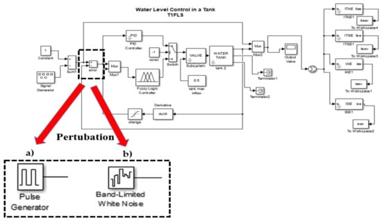 An important aspect in the evaluation of the FLCs is the disturbance in the feedback phase. This block allows the bio-inspired algorithm, in this case CSO, to demonstrate its efficiency in the optimization of the control problem. Some works where the behavior of the problem with level of noise in the model is analyzed are [31,58,59,60,61,62,63,64]. In this paper, two type of disturbances are considered in each model.