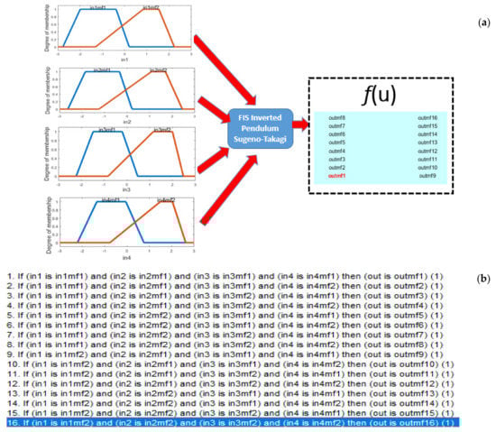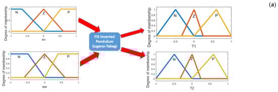 The general idea of a Fuzzy Logic Controller (FLC) was created by Mamdani in 1976. An important work of FLC is in [55] describing an application of fuzzy algorithms for control of simple dynamic plant. Another variant for the inferences in FLS is Takagi-Sugeno (in this paper the inverted pendulum control problem is of type Takagi-Sugeno), and the works in [56,57] apply this approach in the inference form of Takagi-Sugeno and Mamdani for the Type-1 FLS. Figure 11 shows the general representation of the FLCs.