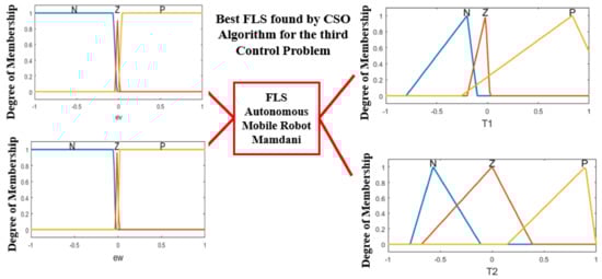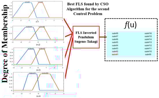 where , [1, rsize] and ≠ . In each control problem, rsize indicates the number of cock swarms, and the size of the swarm is 30 values. Also, a cock particle represents the number of values for the design of the MF for the Fuzzy Logic System in this paper; for each control problem the values of the MFs are different (see Table 1). and are the fitness values of cock particle and , respectively; is an important value that represents a number which is used to avoid zero-division-error, is the smallest constant in the computer. Otherwise, for CSO algorithm, hen swarm was selected with good fitness. Its random search is found by Equation (5) that is performed via cocks of hen population and that of others.