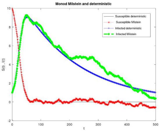The functions and are . Thus, according to the Cauchy–Lipschitz theorem [21], Equation (5) has a unique positive solution on the infinite time horizon, whenever □