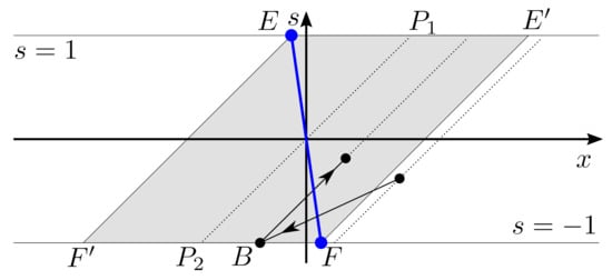 where we use the notation . Since , Equation (5) implies for all n if . This means that the trajectory converges to the equilibria along the slanting segment and never leaves the parallelogram . Similarly, if and, in addition, , then Equation (6) also implies for all n. By definition of , we have ; hence under the assumptions of the lemma, the sequence satisfies , and therefore, the formulas explicitly define a trajectory of . This trajectory also converges to the equilibrium “jumping” over it along the slanting segment and never leaving the parallelogram . □