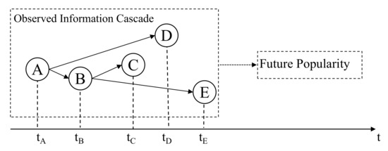 - Chen, X.; Zhang, K.; Zhou, F.; Trajcevski, G.; Zhong, T.; Zhang, F. Information cascades modeling via deep multi-task learning. In Proceedings of the 42nd International ACM SIGIR Conference on Research and Development in Information Retrieval, Paris, France, 21–25 July 2019; pp. 885–888. [Google Scholar]