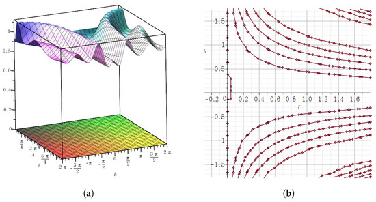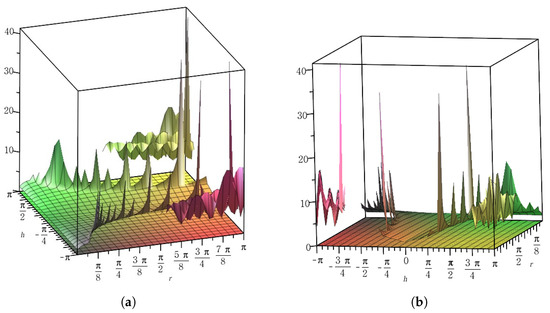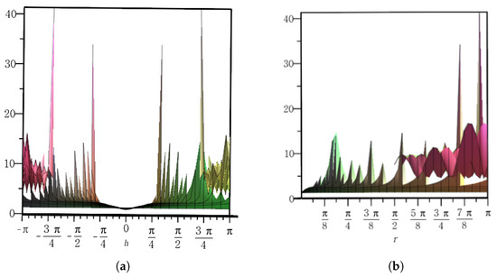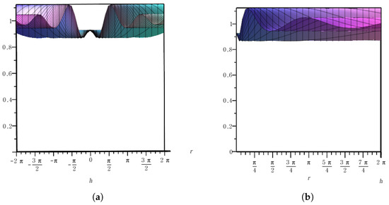 As shown in Figure 3 and Figure 4, it is possible to observe how the value of changes considering h and r, which are independent of each other. In particular, Figure 4a shows that considering , vanishes when the step size h is in the range of . As shown in Figure 4b, regarding h( and ), when the step direction magnitude r is less than , becomes 0.