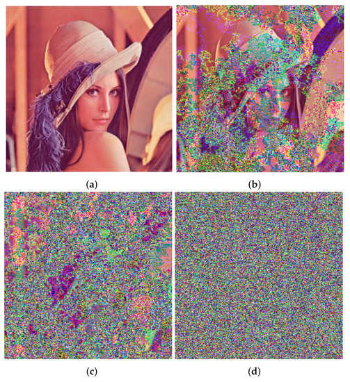 - Enayatifar, R.; Abdullah, A.; Isnin, I.; Altameem, A.; Lee, M. Image encryption using a synchronous permutation-diffusion technique. Opt. Lasers Eng. 2017, 90, 146–154. [Google Scholar] [CrossRef]