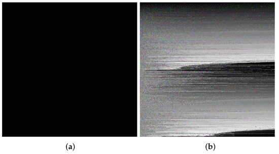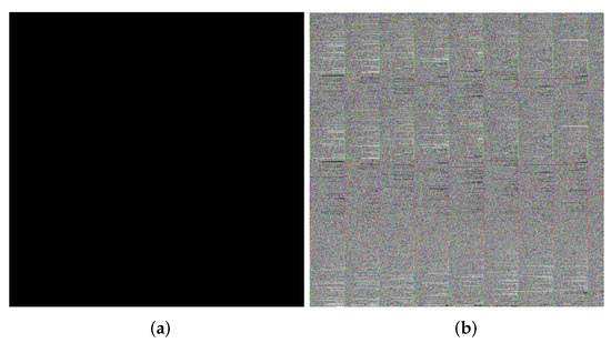 The result of the second version of the deterministic noise. (a) Black image. (b) Deterministic noise added to (a).