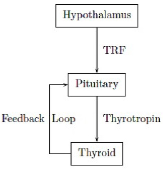 - Mukhopadhyay, B.; Bhattacharyya, R. A mathematical model describing the thyroid-pituitary axis with time delays in hormone transportation. Appl. Math. 2006, 51, 549–564. [Google Scholar] [CrossRef]