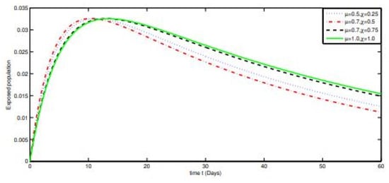Graphs of numerical solutions at different fractal-fractional order for Exposed class.