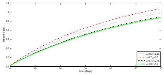 Graphs of numerical solutions at different fractal-fractional order for Infected class.