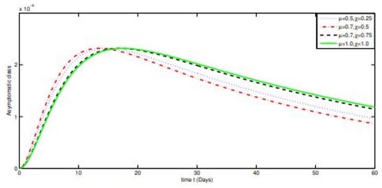 Graphs of numerical solutions at different fractal-fractional order for Asymptomatic class.