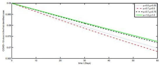 In Figure 9, we see that at different fractal fractional order the population of susceptible class is decreasing with a different decay curve. The smaller the values of orders, the faster the decay process and vice versa. In addition, in Figure 10, Figure 11, Figure 12 and Figure 13, the populations of various compartments are growing. The growth rate is faster at larger values of fractional-fractal order and vice versa. In Figure 14, we see that the population of numbers of corona virus is also increasing with high speed as infection has increased in the last two months. From these graphical presentations, we conclude that fractal fractional order derivatives explain population dynamics of model of infectious disease more frequently and are easier to understand.