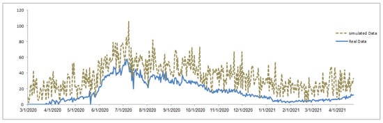In Figure 15 and Figure 16, we compare our simulated results in case of infected reported and deaths of KSA as given in Table 5 from 23 April 2021 to 31 May 2021.