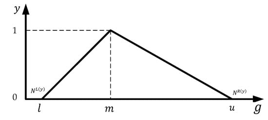 As shown in Equation (2), the triangular fuzzy number is given as: