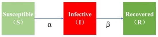 According to the Figure 2, when the public opinion information of a hot event is formed, susceptible individuals (S) will receive relevant information under the influence of surrounding infected individuals and thus become infective individuals (I). Assuming that there are r susceptible individuals among the neighbors of the infective person at this time, the susceptible person will become infective with probability α after contact with the infective person, while infective individuals will gradually lose interest as time goes by and recover with probability β [27].