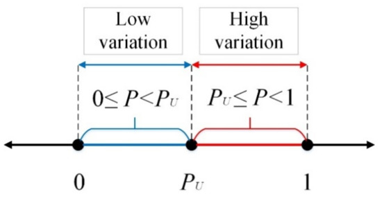 The initial public opinion variation degree is divided into two intervals, with PU as the threshold. When 0 < P < PU, the degree of variation is lower; when PU < P < 1, the degree of variation is higher. The specific process is shown in Figure 3.