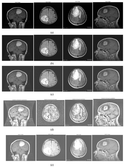 - Anoop, B.N.; Joseph, J.; Williams, J.; Jayaraman, S.; Sebastian, A.M.; Sihota, P. A prospective case study of high boost, high frequency emphasis and two-way diffusion filters on MR images of glioblastoma multiforme. Australas. Phys. Eng. Sci. Med. 2018, 41, 415–427. [Google Scholar] [CrossRef] [PubMed]