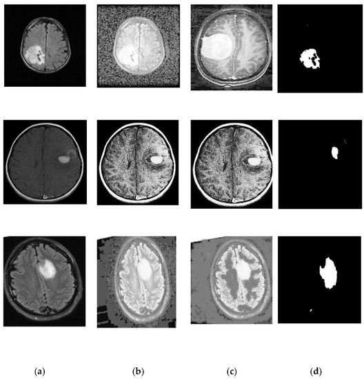 - Roy, S.; Bandyopadhyay, S.K. Detection and Quantification of Brain Tumor from MRI of Brain and it’s Symmetric Analysis. J. Inf. Commun. Technol. 2012, 2, 477–483. [Google Scholar]