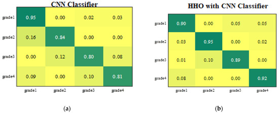 Finally, a classification procedure is applied to obtain the severity stages and better accuracy. By analyzing Table 4, the performance measures such as PSNR, MSE, and SSIM are analyzed for preprocessed brain cancer MRI images, and the values are obtained. As can be seen from Table 12, the experimental result proves that by using the optimized technique, the overall accuracy is high. From our experiments on different images, it is observed that the proposed method works well in both cases when the objects in the image are indistinct and distinct from the background. Each image MCC is high for CNN with the HHO model. This denotes that the proposed study has achieved a better result. Figure 8 gives the experimental output image for the input image for different stages such as preprocessing, segmentation and for sealion optimization.