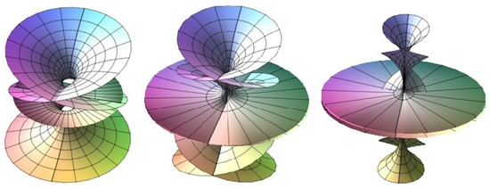 We reveal the surfaces and . By using , respectively, and also (10), (11), we obtain the following surfaces :