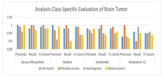 Analysis: class-specific evaluation of brain tumor using different CNN.