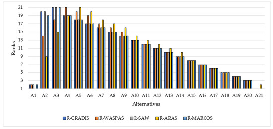 3.4. Determining the Optimal Solution Using the Rough CRADIS Approach