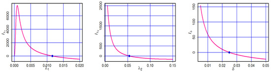 The ordinary least square approach [22] is widely used for assessing undetermined parameters. The LSEs of and , indicated by and , can be determined by minimizing Equation (42)
