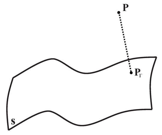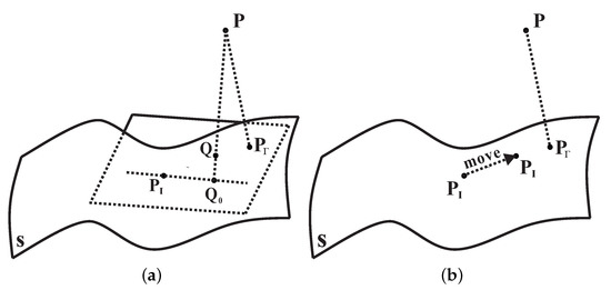 Secondly, it is deduced that the order of foot-point in Equation (14) is no more than 2. Since is the vertical foot derived from the tangent plane, it is clear that the order of foot-point in Equation (14) is 1. Therefore, the order of convergence of the foot-point is 1.