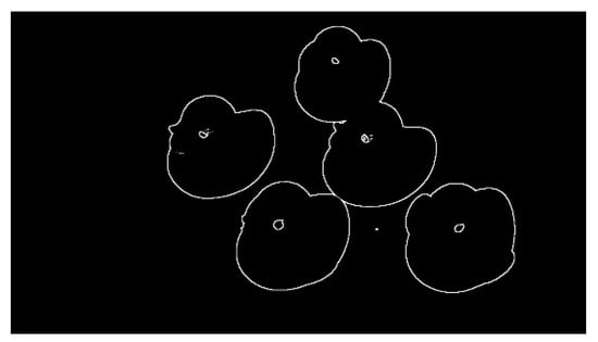 According to Figure 9 and Figure 10, the edge graph obtained by our method (Figure 10) has fewer unorganized points, that is, the gray image processed by fuzzy mathematical morphology with pseudo overlap functions can achieve better image edges through edge extraction in mathematical morphology. This is because the dilation and erosion operations of fuzzy mathematical morphology with pseudo overlap function expand the contrast of foreground and background in the gray image from two aspects: reducing the background gray value and increasing the foreground gray value, which can be seen from Figure 5 and Figure 6. Moreover, after introducing convex combination, the advantages of dilation and erosion are combined to further expand the contrast of foreground and background in the gray image. This allows us to extract the foreground with a more accurate threshold in the binarization operation, thus reducing noise similar to that in Figure 9.