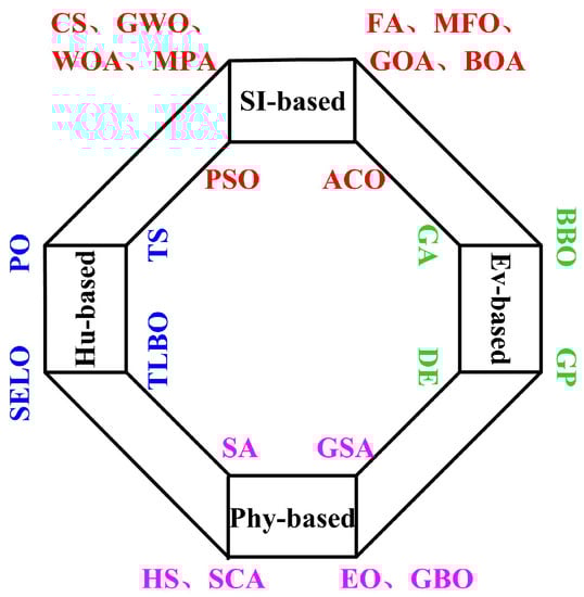 - Kumar, M.; Kulkarni, A.J.; Satapathy, S.C. Socio evolution & learning optimization algorithm: A socio-inspired optimization methodology. Future Gener. Comput. Syst. 2018, 81, 252–272. [Google Scholar]