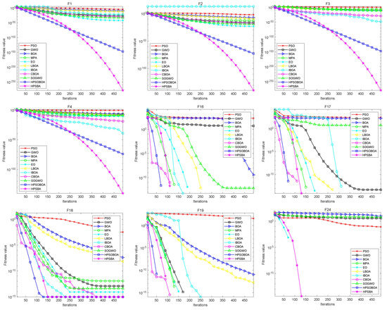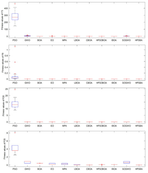 4.2. Comparison Results of HPSBA with Others (Dim = 30)