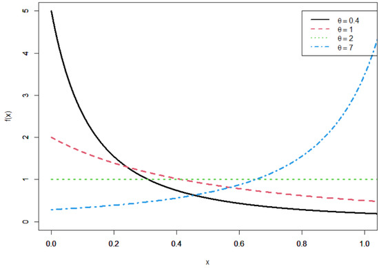 - Lastly, when , the pdf of the UHLG distribution is constant and equal to 1. □