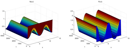 Figure 4. Numerical simulations for ( 4 ) with τ = 1.2 and β = 0.48 .