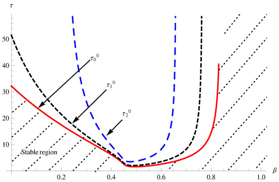 Now, suppose τ > 0 , one of the conditions (1)–(3) in Theorem 2 and hypothesis (11) hold. Assume i ω ( ω > 0 ) is a solution of Equation (8), we can obtain
