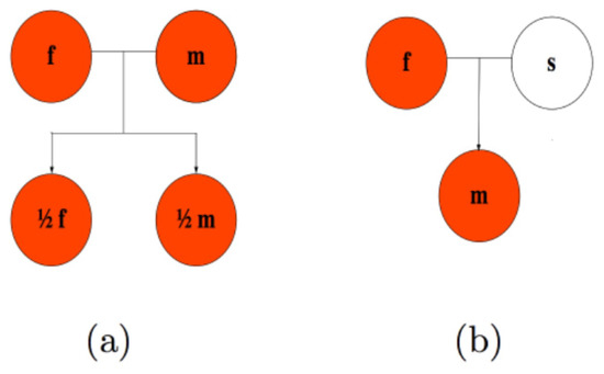 The pedigree tree of the TYC model (that demonstrates Trojan Y Chromosome eradication strategy). (a) Mating of a wild-type XX female (f) and a wild-type XY male (m). (b) Mating of a wild-type XX female (f) and a YY supermale (s).