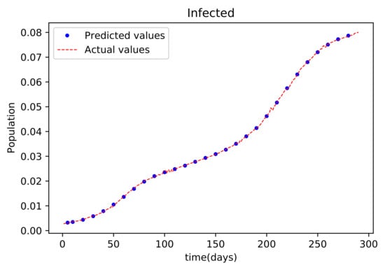 Data analysis tools such as machine learning (ML) have also been used to better understand the distribution patterns of COVID-19 [,]. The viability of applying artificial intelligence (AI) technologies to solve ODEs has been questioned because these equations are governed by scientific rules that are never imposed during the training process []. A novel framework called Physics Informed Neural Networks has been developed to address this problem (PINNs). It can also make very accurate predictions based on very small datasets [].