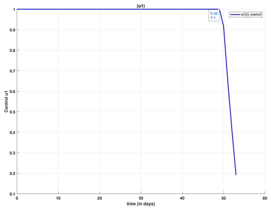 Our solution of optimal control showed that, to reduce the impact of imperfect vaccination, we needed a longer awareness campaign to engage the population in vaccination. On the other hand, the restriction on population mobility should not be long, since our simulation showed a drop of from 1 (full restriction) after 24 days. To ensure the full protection of the health population, vaccination efficacy must increase by in the first 50 days.