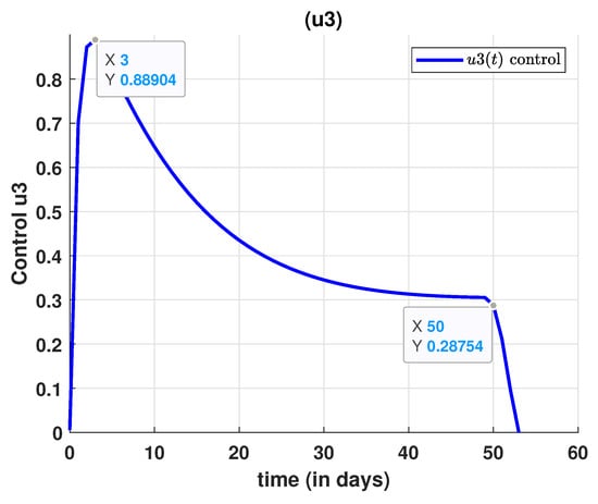 Figure 9. Those figures show the intensity of each measure needed to be implemented in the case of imperfect vaccination. The awareness campaign should stay as long as 7 weeks with maximum intensity. At the same time, non-pharmaceutical measures must take place, including mobility restrictions or lockdown for at least 24 days. With regard to the third control measure, the improvement of the vaccine population should increase to reach possible efficacy during the first week of vaccination and stay above