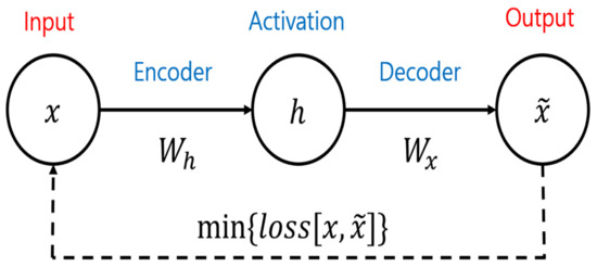 As illustrated in Figure 4, a basic model is usually composed of three phases. The process starts with the encoder, which is defined as an affine transformation after compression. The encoder consists of filters that the model uses to learn essential characteristics of the input and build a hidden layer called h. The decoder is a set of filters that reverses the linear filters and produces a reconstruction of the input data (i.e., through backpropagation). Then, the AE produces an output that is a prediction/reconstruction of the model’s input. We conventionally call this a three-layer neural network, and it can be expressed mathematically by the following equation.