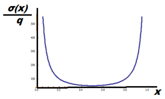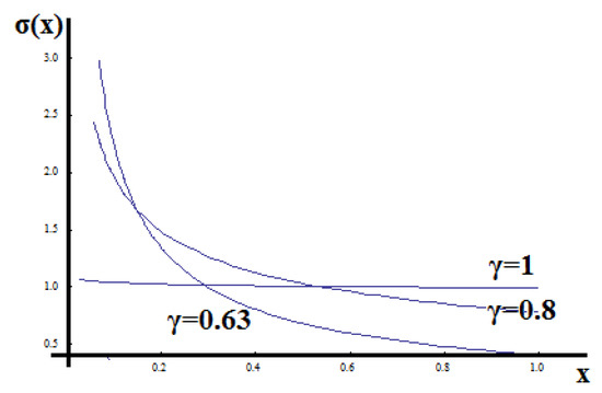 Likewise, the right RL derivative, Equation (4), may also be considered since there is not any direction preference. Figure 7 shows the stress distribution along the unit rod with fractal dimension d = 0.63 and fractal dimension d = 0.8.