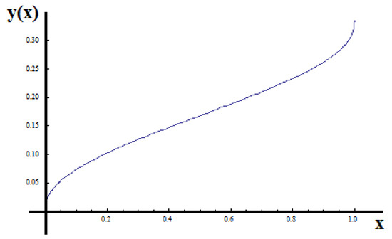 For the fractal bar with dimension γ = 0.63 and with (unit length), the non-dimensional displacement y(x) has been shown in Figure 4.