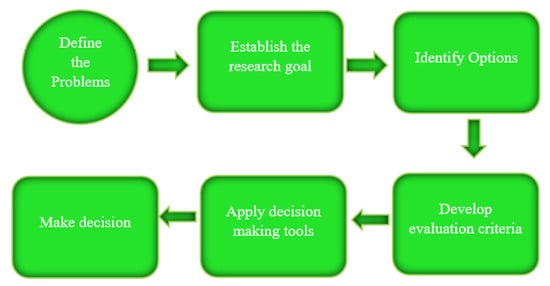 The MCDM model is a study area that involves the examination of numerous accessible options in a circumstance or research topics that include everyday life, social sciences, engineering, medicine, and many other fields. The term MCDM refers to the process of selecting the best opinion from among all viable possibilities. Figure 1 depicts a MCDM process model.