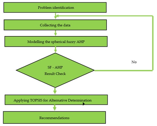 The SF-AHP approach extends the AHP with spherical fuzzy sets. The SF-AHP approach consists of five stages: