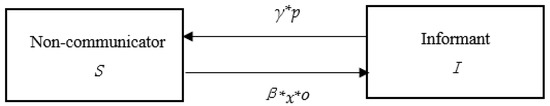 In Figure 1, the communicator I is transformed into a non-communicator under the action of the inhibitory factors γ*p. Similarly, the non-communicator S is affected by the promoting factor β*x*o and turns from a non-communicator into a communicator.