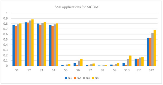 The outcomes of Table 13 are portrayed in Figure 9, which shows that after applying the proposed SMs, is the best choice for MCDM purposes.